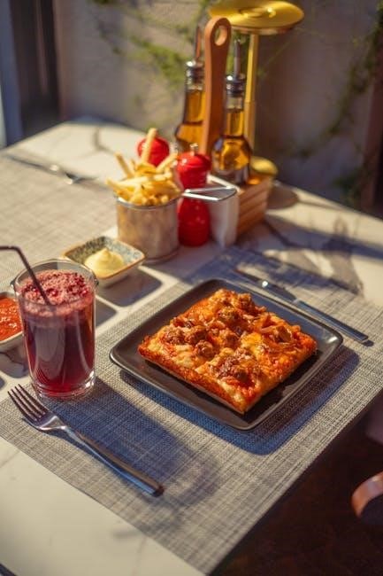 If you’re craving something a bit more substantial‚ consider a side of garlic bread or breadsticks for extra carb-loading fun. A light pasta salad‚ perhaps with a vinaigrette dressing‚ can also complement the pizza nicely. Don’t forget the drinks! A cool soda‚ iced tea‚ or even a sparkling water can complete the meal. Ultimately‚ the best side dish is one that you enjoy and that balances the flavors of the pizza.
